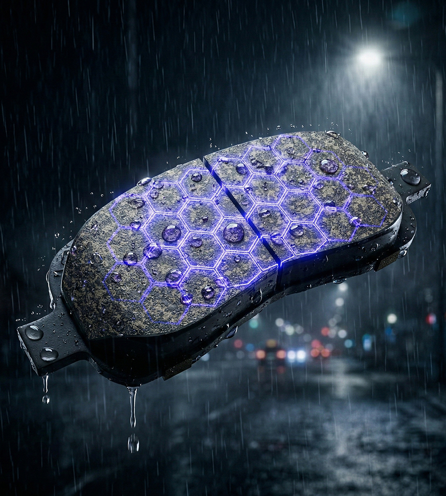 Our signature formulation. This is how we extend our promise of providing consistent braking power at anytime, any weather, anywhere. With the hexagonal molecular structure achieved with the formulation, the brake pads provides optimized contact points allowing water dispersion while maintaining the structural rigidity, crucial in making the Type 03 brake pads maintain braking effectiveness in even the most inclement weathers.